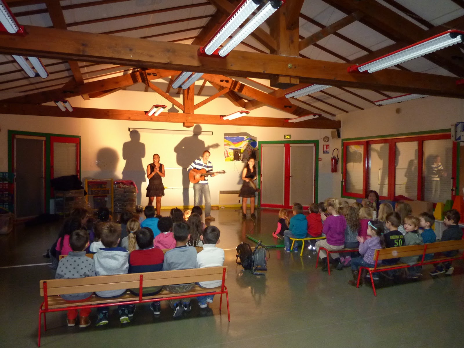 A ensuite eu lieu le spectacle des primaires, à la salle des fêtes. Au programme, chansons, danse (avec participation des élèves) et anecdotes sur le thème de Noël.