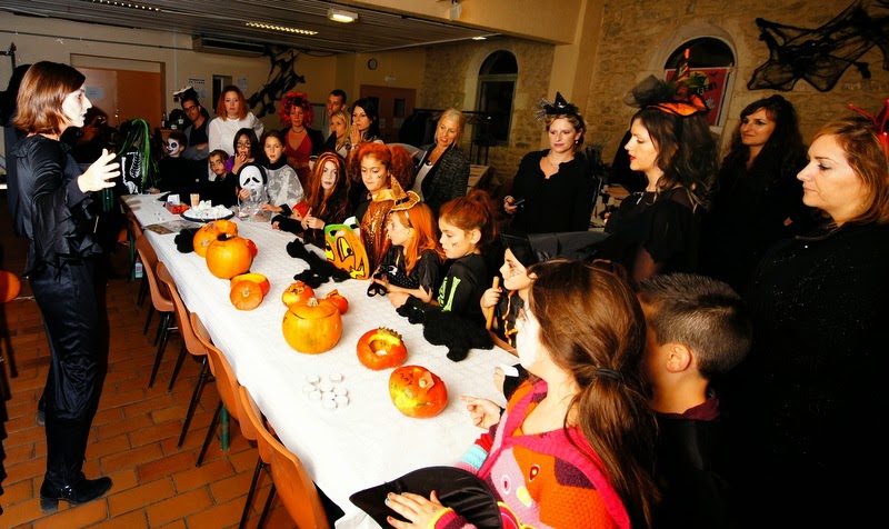 Une bonne cinquantaine d’enfants du village ont été accueillis par une équipe de sorcières et de courges (lol!), le vendredi 31 Octobre à la salle des fêtes de St Restitut, décorée pour l’occasion,